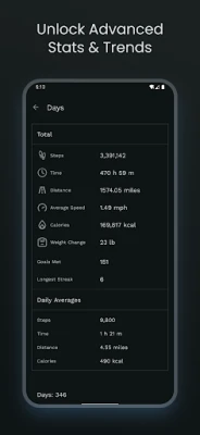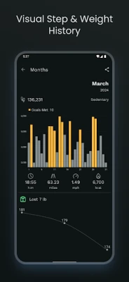 • Advanced step history (weekly/monthly goals, goal streaks)