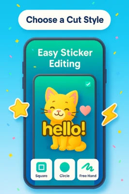 Turn your favorite images into creative stickers in just a few taps! This simple sticker maker lets you crop photos, add fun text, emojis, and icons, then export your pack to use in popular chat apps.
