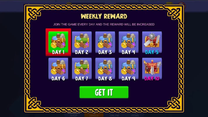 • Daily rewards that help unlock items, improve combat strength, and progress faster.