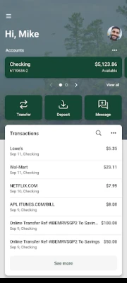 Set up alerts so you know when your balance drops below a certain amount Make payments, whether you’re paying a company or a friend Transfer money between your accounts Deposit checks in a snap by taking a picture of the front and back Reorder your debit card or turn it off if you’ve misplaced it View and save your monthly statements Find branches and ATMs near you Secure your account with a 4-digit passcode or biometric on supported devices.