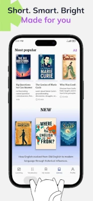 📚 Unique texts from books, articles, and real-life facts 🧩 Smart vocabulary practice using proven memory techniques 🤖 Interactive chats and personalized exercises with an AI tutor 📈 Feedback and progress tracking that adapts to your needs