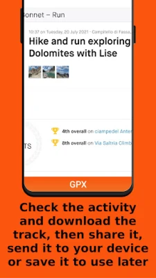 - Share the GPS track with your friends or followers via instant messaging apps, e-mail, social networks, ...