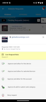 The app dashboard gives you a very easy view on all pending actions in your account and provides a fast and intuitive means to action each request.