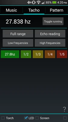 The new audio tachometer feature allows your phone to listen to a repeating sound and discover the fundamental frequency plus any harmonics. Then with a simple button press, you can flash the LED at that frequency and watch everything freeze.