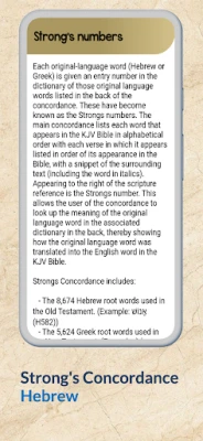 The Strong's Concordance, also known as James Strong's Exhaustive Concordance of the Bible or informally as "Strong's Numbers," is a listing of all the words found in the text of the Bible.