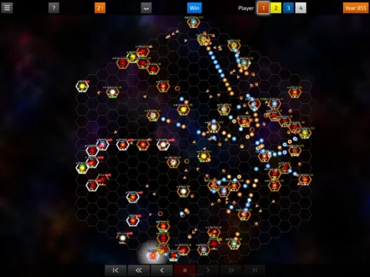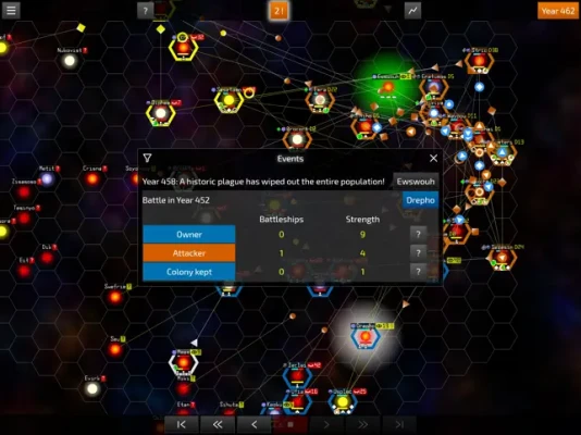 Einstein's theory of relativity states that nothing is faster than light. This also applies to this game. Information is radio signals propagating at the speed of light. These radio signals transmit your commands and the events you receive. Spaceships move at a fraction of the speed of light. So it takes years for a command or a spaceship to reach its destination. When a battle takes place, you won't know about it until years later.