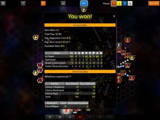 To win the game, you must conquer 2/3 of all stars.
