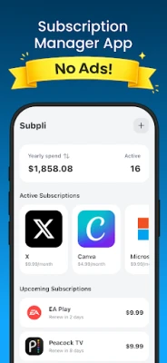Subpli is the smart way to stay on top of every subscription, membership, and recurring payment. Add services in seconds, organize costs by category, and get notified before renewals so you never pay for something you don’t want, without ads, accounts getting in the way.