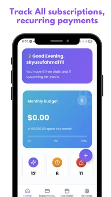 Subscription Tracker & Manager is an all-in-one personal finance app and budgeting tool that keeps all your recurring payments organized. Track subscriptions, bills, and free trials in one place, and get notified days before any due date so you never miss a payment.