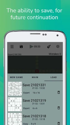 - sizes - 4x4, 6x6, 8x8, 9x9, 10x10, 16x16 - four levels of difficulty - possibility of saving, for further continuation - automatic saving - availability of tips - statistics - color themes - pencil mode - cancellation of the last moves