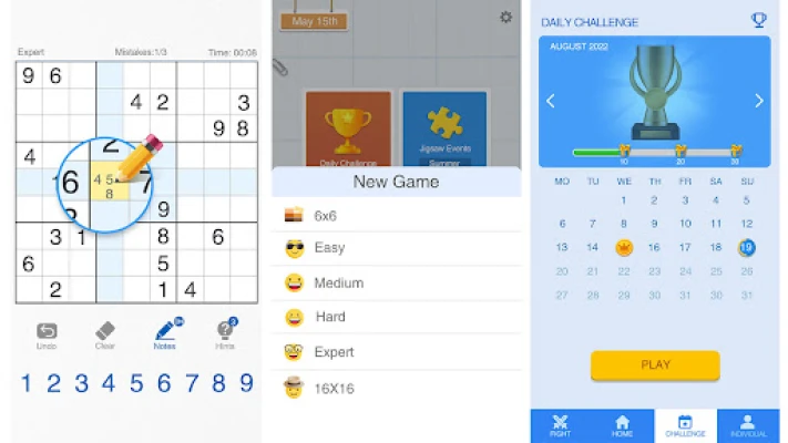 - Classic Sudoku comes in 7 perfectly balanced difficultly levels: 6x6, Easy, Medium, Hard, Expert, Extreme,16x16