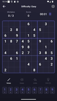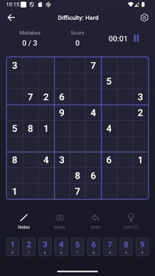 "Notes" Mode (Pencil): Jot down several potential numbers in a single cell to make it easier to reason and apply complex strategies.