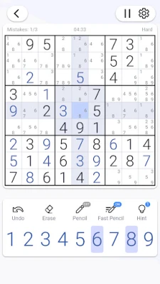 Choose from two input modes: Cell first or Digit first, and enjoy super smooth interfaces like on paper/newspaper. The unlimited undo and eraser features will help you get rid of mistakes, and highlighting of a row, column, and subgrid related to the selected cell will help you discover patterns quickly.