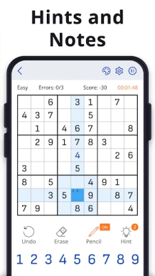 - Classic Sudoku gameplay with a 9x9 grid