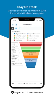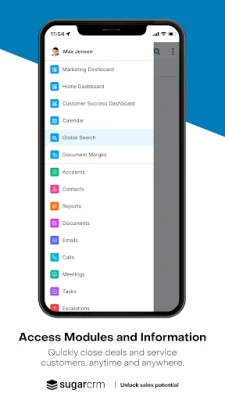 With the SugarCRM mobile app, you can take your business processes and CRM data on the go, including access to contacts, accounts, leads, activities, and custom Sugar modules.