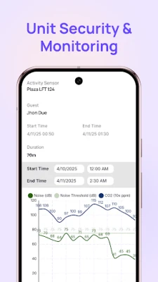 • Noise & Occupancy Monitoring Sensors: Prevent parties and noise complaints while ensuring compliance with local regulations through real-time alerts and monitoring.
