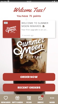 SKIP THE LINE — ORDER AHEAD! • Create an account to save your favorites and make reordering a snap • Place your order any time • Choose your pickup time • Pay using your choice of convenient options • Customize your drink to enjoy Summer Moon your way