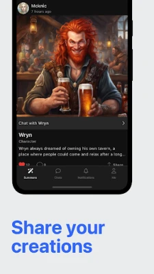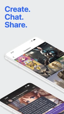 Share your creations, from characters to worlds, with the community. Collect inspiration, and like/comment on your favorites. Follow creators you like to see even more of their content.