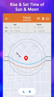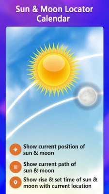 Sun & Moon Locator, Calendar shows you the sun & moon position at any time. Get moonrise and moonset times, lunar phase on an augmented reality camera view for any day of the year at your current location.