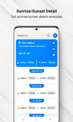 - Date picker feature to check when the sun will rise and set on particular date.