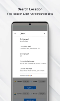 - Location search feature to get Sunrise & sunset timing of particular location.
