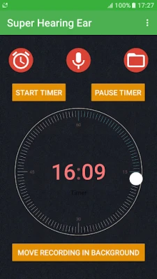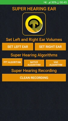 Super Hearing Ear amplifies sound from the microphone straight to your headphones to give enhanced hearing and also it can record the sound if you wish. It works like a hearing aid or better hearing on low volume of the gossips. What's more, it can record audio in timer mode to help you and Headphones are required and a must. You can Adjust amplification sensitivity by seek bar and get better sound and eliminate unwanted noise from microphone. So, Super Hearing Ear turns up the volume on real life to help hear things that may be difficult to hear or understand. Thank you for supporting us. We are happy to help you if you provide us feedback !