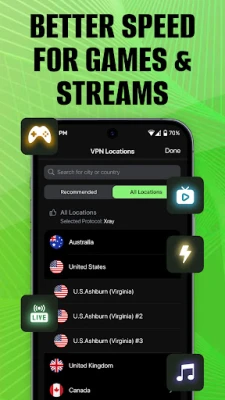 โข VPN for gaming and video streaming