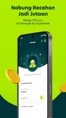 - Earn up to 7.5% p.a. on Deposit, 10% p.a. on Celengan by Superbank savings, and 5% p.a. on regular savings.