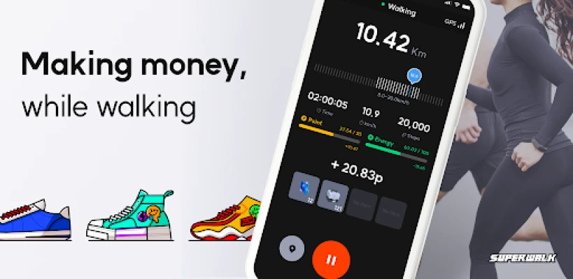 • Earn SuperMoney and SuperCash simply by walking a certain number of steps.