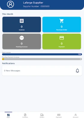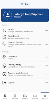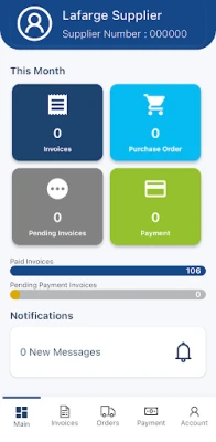 Streamline your supply chain operations with the Lafarge Iraq Supplier 4545 application. This app is designed to provide suppliers with efficient tools for managing invoices, profiles, registrations, purchase orders (POs), and payment tracking.