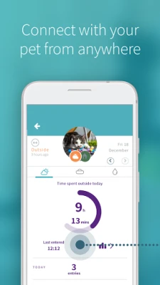 • View your pet’s dashboard for a snapshot of their day: how much time have they spent outside? When did they last eat? How much did they drink? and much more.