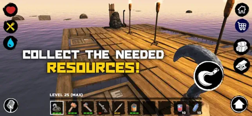 Spread, equip and protect the raft. Build a real shelter that will allow you to last as long as possible!