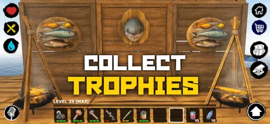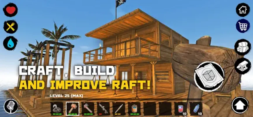 A terrible plane crash took the lives of all the passengers and crew... except for one. You a survivor and now you are out of civilization. Around the ocean, hot sun and hungry shark. An almost hopeless situation and a huge opportunity to die throw adrenaline into your blood. You have only one thing — craft for survive.