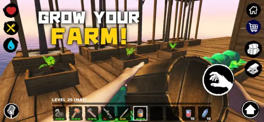 Catch fish, grow vegetables and get water — do everything to survive! Create building materials, clothes, weapons, chests and other things necessary for survival.