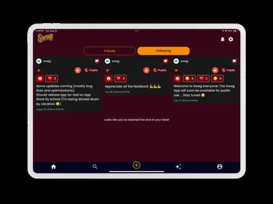 · Post Sharing: Don’t feel like sharing something with everyone? Unlike other platforms that force you to make all your posts public or private, Swag lets you choose for each post who you want to share it with.
