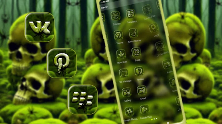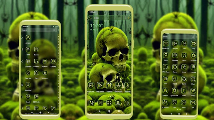 The Swamp Skull Green Launcher theme is an Android mobile theme with amazing effects, beautifully applied icons, and Skull wallpaper. This theme is suitable for most Android models. Install the Swamp Skull Green launcher theme and experience the cool and amazing home screen to make your phone cool.