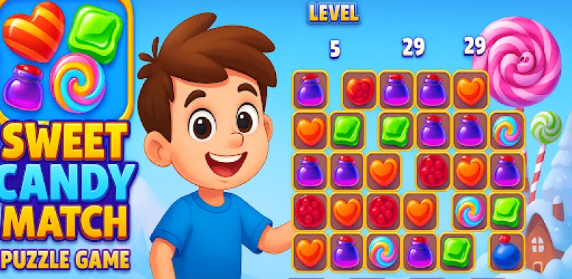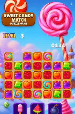 Sweet Candy Match Puzzle is a casual match 3 puzzle game focused on relaxing gameplay, colorful candy designs, and enjoyable level progression.