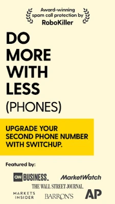 SwitchUp is the new highly-rated 2nd number app that has already been trusted by more than 35,000 people in the US who want to take control of their private mobile communication. SwitchUp's intuitive features have been featured by CNN Business, The Wall Street Journal, MarketWatch, The Associated Press, Barrons, Markets Insider, and more! The second phone number is a must in our modern world. Try SwitchUp today!