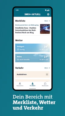 Du willst SWR Aktuell im Radio hören oder dir die letzte Ausgabe der Fernsehnachrichten ansehen? Auch das geht bequem und einfach über das Menü am unteren Bildschirmrand.