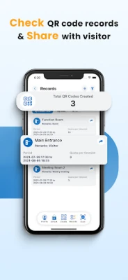 Staff can clock in and generate QR code with time setting for visitors by using the mobile app. By granting permitted QR code, visitors can access specific entrances without support from onsite guards, which can save time for onsite registrations.
