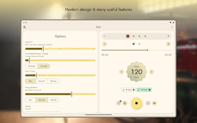 • Quick tempo changes with intuitive picker and a separate tap screen