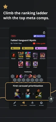 • Queue up in a TFT game, choose a Tacter meta comp given your early champions and items, learn in-depth about the comp and win!