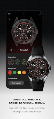 Customize your digital watch faces through the app, inspired by TAG Heuer’s most iconic mechanical collections