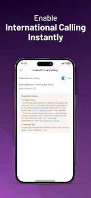 • Turn on international calling in seconds