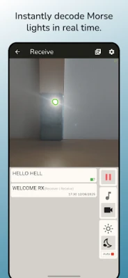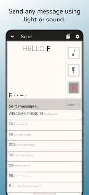 The receiving part of the application allows you to intercept audio Morse code signals with the microphone or flash signals with the camera. The decoded messages are visible to the user in real time.