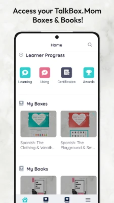 Access the native speaker audio for your current TalkBoxes and books with autoplay, bonus phrases, and phrase search! Track your families progress phrase by phrase. Receive awards and certificates for your accomplishments. Ask questions, request phrases, and share all of your fun with the TalkBox.Mom team and families. Now, whenever you need help talking in a foreign language with your family, this app will be like your native speaking sidekick! Practice more often with your family, finish your TalkBoxes with more confidence, and move further down the path towards fluency to reach your family’s goals.