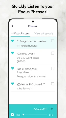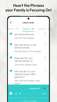 Focus on what’s important to your family by hearting the phrases that your family really wants to learn! Then check off these phrases once they become so easy. Access both lists easily as you watch phrases move from Learning to Mastered!