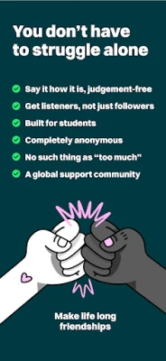 TalkCampus is a global peer support network for students living and studying away from home. It offers a safe, moderated space to share what you’re going through, connect with others who understand student life, and feel heard at any time of day or night.