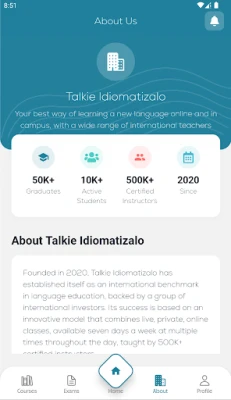 Robust Exam System: Prepare for and ace your exams with Talkie's integrated exam system. Take timed exams with automatic saving, ensuring your progress is never lost. Review your detailed results and track your performance over time with a comprehensive exam history. New exams are conveniently displayed on your home screen, so you never miss an opportunity to test your knowledge.