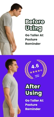 Increase lost height from your poor posture. Get taller with Posture Reminder & AI Coaching for daily neck, back, and shoulder relief.